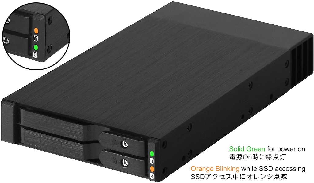 * 單體雙色LED燈號設計: 綠色Power電源燈/橘色SSD讀取燈