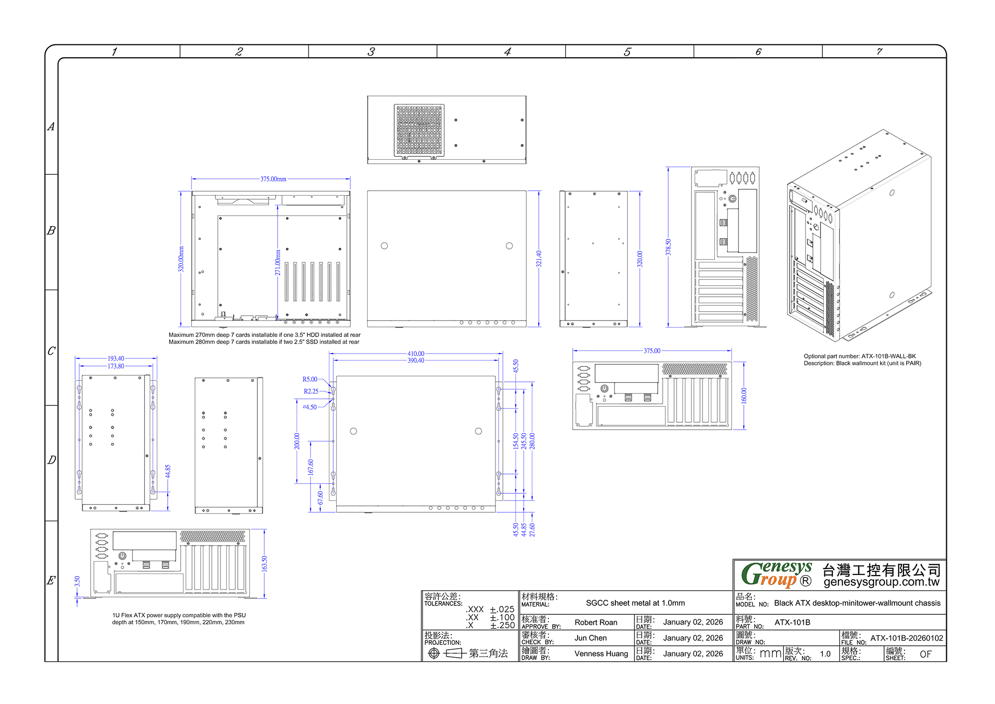 * 板金主要構造は厚さ1.0mmのSGCCパターンレスを採用している