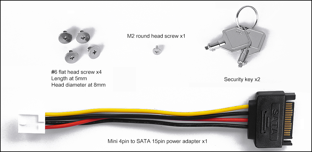 * 標準付属品: M2 flat head x2, #6 flat head x4, security key x2, 4pin to