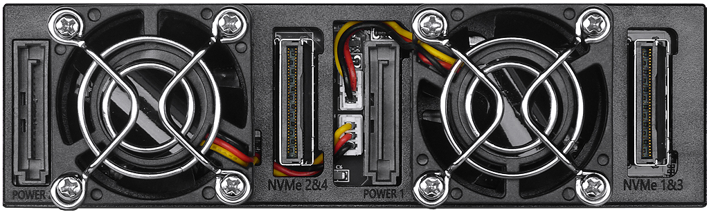 * 背面インターフェイス: OCuLink 4i (SFF-8612) ポートx2、4pin 電源入力x2 (SATA 15pin